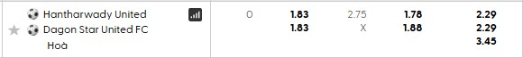 Thông tin tỷ lệ cược Hantharwady vs Dagon FC: