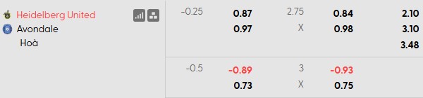 Thông tin tỷ lệ Heidelberg United vs Avondale: