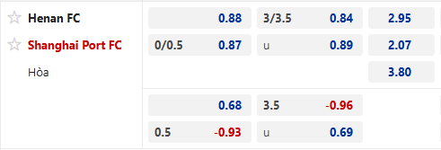 Thông tin tỷ lệ Henan vs Shanghai Port: