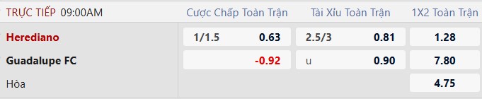 Thông tin tỷ lệ kèo Herediano vs Guadalupe:
