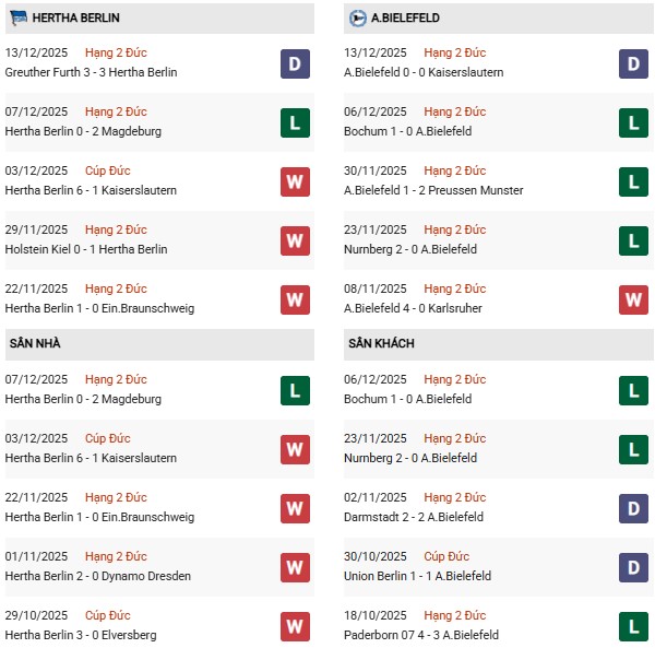 Thống kê phong độ Hertha Berlin vs Bielefeld: