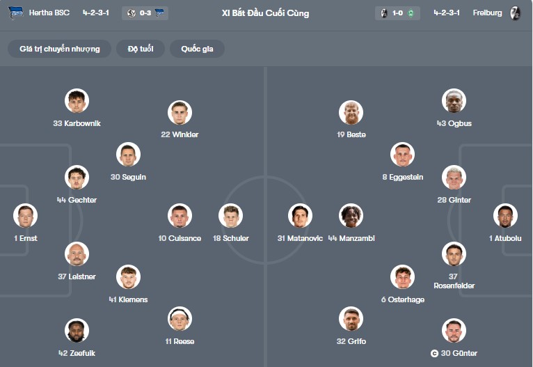 Đội hình dự kiến Hertha Berlin vs Freiburg: