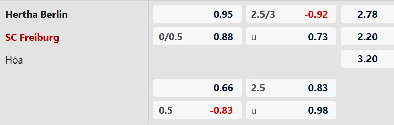 Thông tin tỷ lệ kèo Hertha Berlin vs Freiburg: