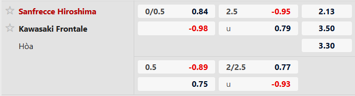 Thông tin tỷ lệ Hiroshima vs Kawasaki Frontale: