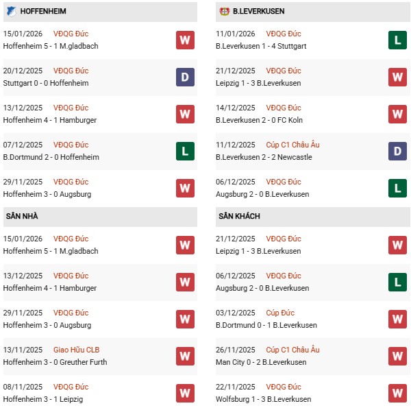 Thống kê phong độ Hoffenheim vs Leverkusen: