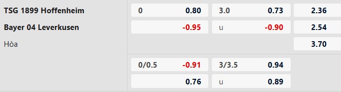 Thông tin tỷ lệ kèo bóng đá Hoffenheim vs Leverkusen: