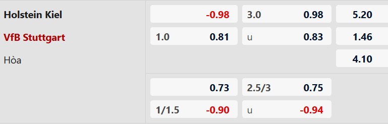 Thông tin tỷ lệ bóng đá Holstein Kiel vs Stuttgart: