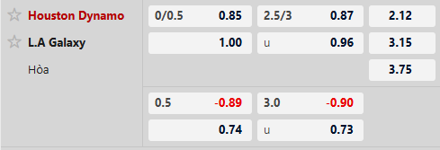 Thông tin tỷ lệ kèo Houston Dynamo vs LA Galaxy: