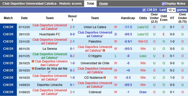 Bên kia chiến tuyến, Universidad Catolica đến với Siêu Cúp Chile nhờ vị trí Á quân tại giải VĐQG Chile 2025, qua đó khẳng định đẳng cấp của một trong những đội bóng hàng đầu quốc nội. Phong độ gần đây của Universidad Catolica đặc biệt ấn tượng khi họ thắng tới 8, hòa 1 và chỉ thua 1 trong 10 trận gần nhất trên mọi đấu trường.