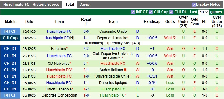 Huachipato góp mặt tại Siêu Cúp Chile mùa này nhờ chức vô địch Cúp Quốc gia, thành quả cho thấy họ là tập thể có tính ổn định và bản lĩnh trong các trận đấu loại trực tiếp. Xét về phong độ tổng thể, Huachipato đang duy trì thành tích khá cân bằng với 3 chiến thắng, 5 trận hòa và chỉ thua 2 trong 10 trận gần nhất trên mọi đấu trường. Dù số trận thắng chưa nhiều, nhưng việc hạn chế thất bại giúp Huachipato luôn giữ được thế trận chắc chắn, đặc biệt khi bước vào những trận cầu quan trọng.