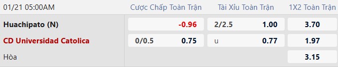 Thông tin tỷ lệ kèo Huachipato vs Univ. Catolica: