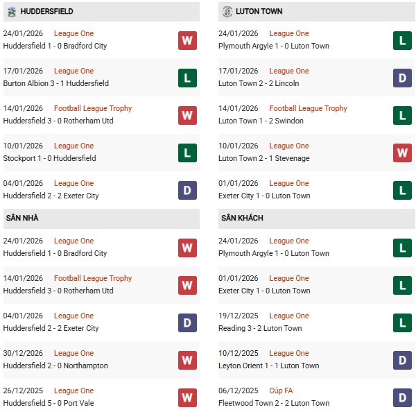- Trên sân nhà, Huddersfield thắng 3, thua 2 trước Luton Town.