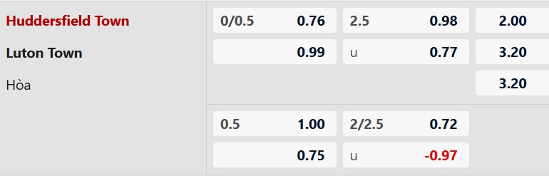 Thông tin tỷ lệ Huddersfield vs Luton Town:
