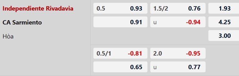 Thông tin tỷ lệ kèo Ind.Rivadavia vs Sarmiento: