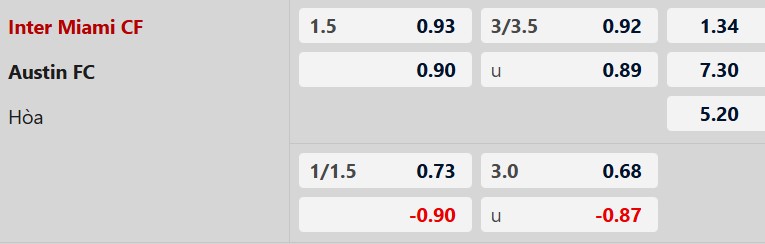 Thông tin tỷ lệ kèo Inter Miami vs Austin: