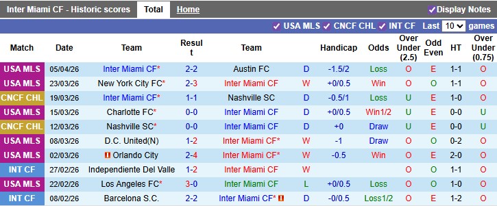 Chẵn bàn thắng: 7/10 trận so tài trước đây giữa 2 đội có tổng bàn thắng chia hết cho 2. Chưa hết, 6/10 trận vừa qua của Inter Miami cũng chứng kiến điều tương tự.