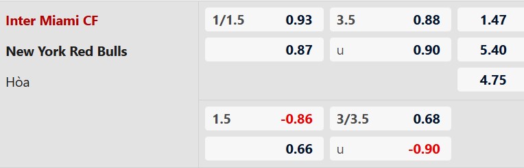 Thông tin tỷ lệ kèo Inter Miami vs New York RB: