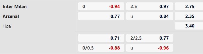 Soi kèo châu Á Inter Milan vs Arsenal: