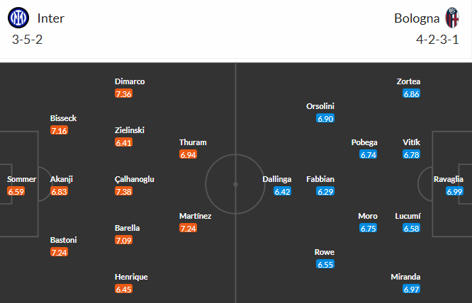 Theo siêu máy tính Sports Mole, tỷ lệ giành chiến thắng của Inter là 44%. Tỷ lệ thắng của Bologna là 21%. Tỷ lệ hòa là 35%.