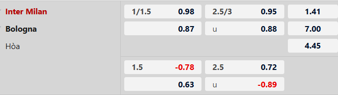Soi kèo tài xỉu Inter Milan vs Bologna: