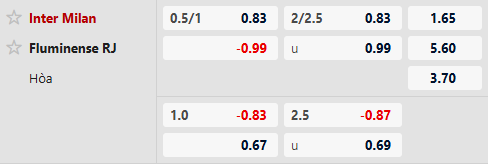 Thông tin tỷ lệ kèo bóng đá Inter Milan vs Fluminense: