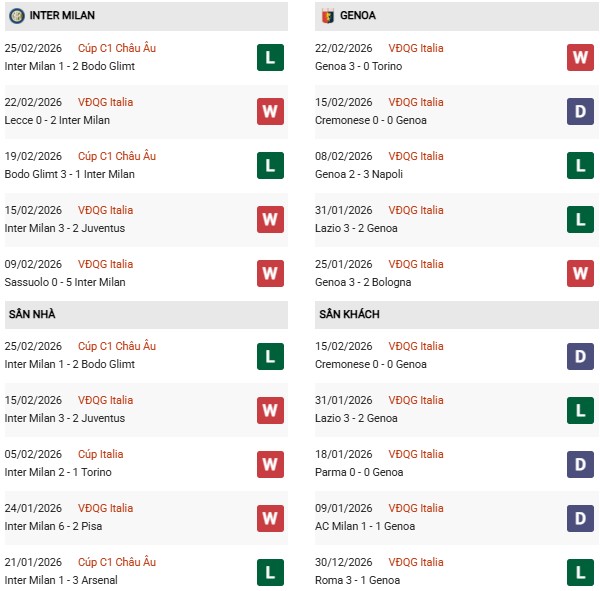 - Trên sân nhà, Inter Milan thắng cả 10 trận trước Genoa.