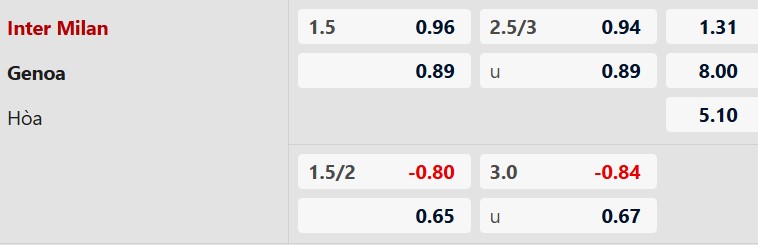 Nhận định kèo châu Á Inter Milan vs Genoa: