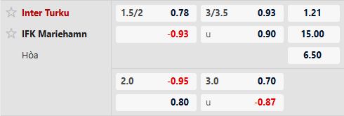 Thông tin tỷ lệ Inter Turku vs Mariehamn: