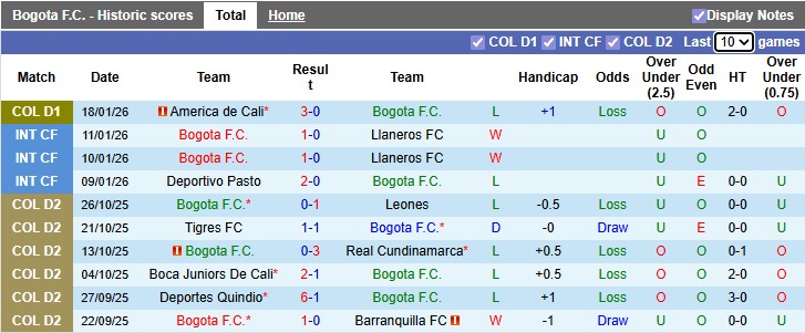 - Internacional Bogota thắng 3, thua 7 trong 10 trận gặp Cucuta gần đây.
