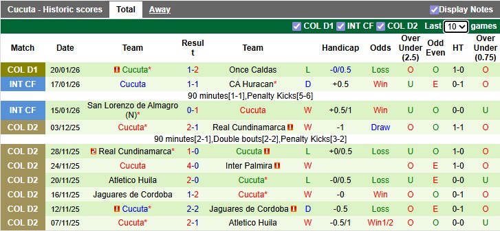 - Trên sân nhà, Internacional Bogota thắng 5, thua 5 trước Cucuta.