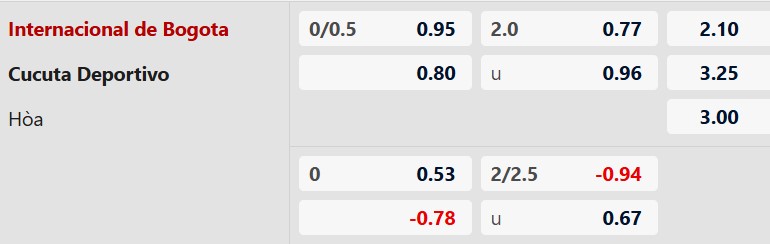 Thông tin tỷ lệ kèo Internacional Bogota vs Cucuta: