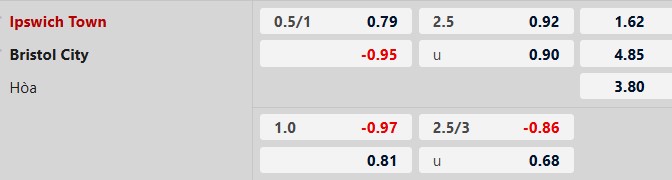 Thông tin kèo bóng đá Ipswich vs Bristol City: