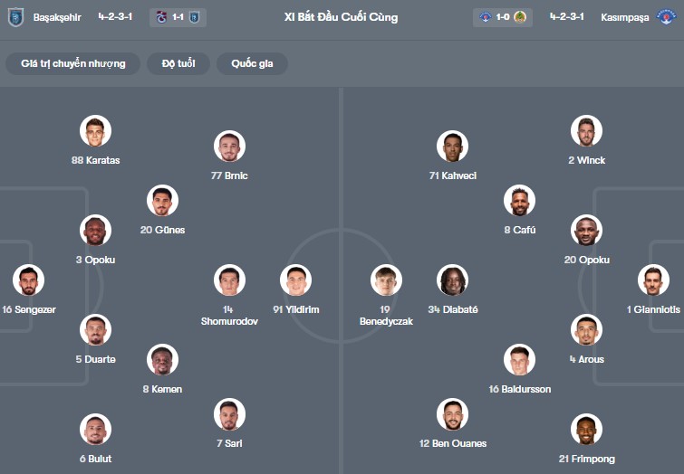 Đội hình dự kiến Istanbul Basaksehir vs Kasimpasa: