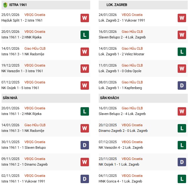 Thống kê phong độ Istra vs Lokomotiva Zagreb: