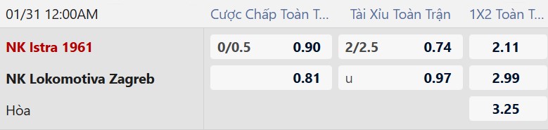 Thông tin kèo bóng đá Istra vs Lokomotiva Zagreb: