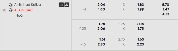 Thông tin tỷ lệ Ittihad Kalba vs Al Ain: