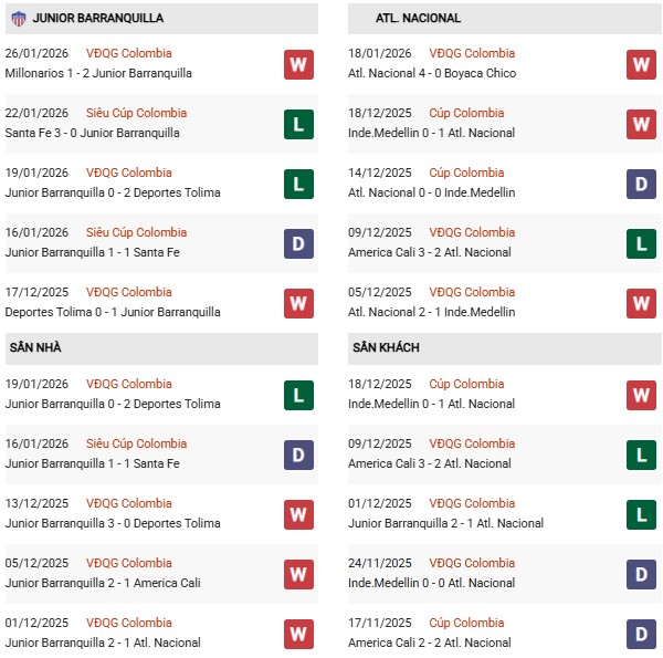 - Trên sân nhà, Junior thắng 5, thua 1 trước Atletico Nacional.