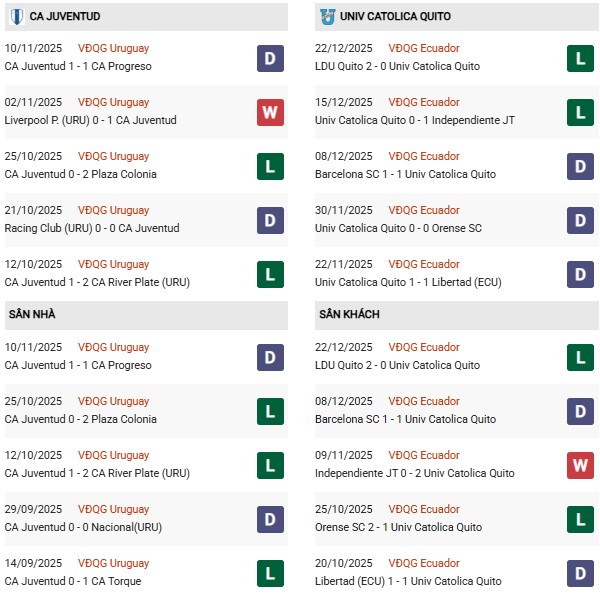 Thống kê phong độ Juventud vs Universidad Catolica: