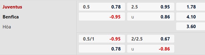 Thông tin tỷ lệ kèo bóng đá Juventus vs Benfica: