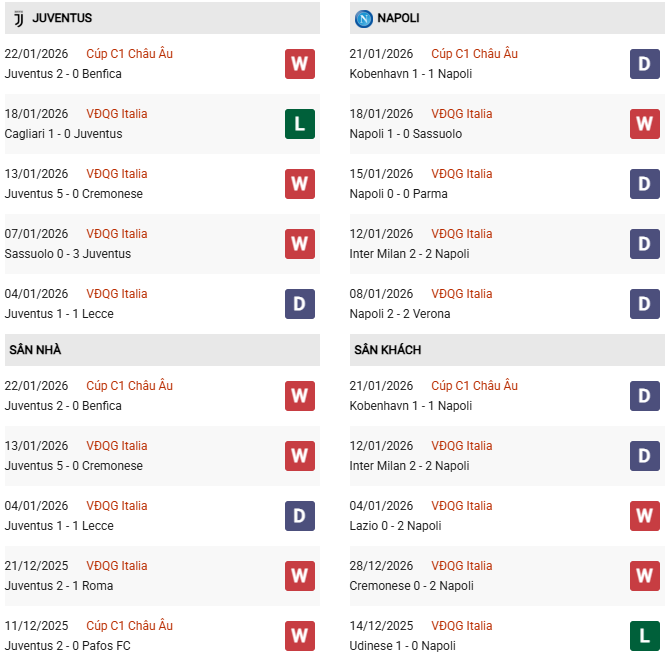 - Trên sân nhà, Juventus thắng 6, thua 2 trước Napoli.