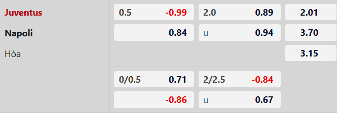 Thông tin tỷ lệ bóng đá Juventus vs Napoli: