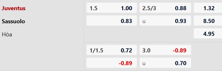 Soi kèo châu Á Juventus vs Sassuolo: