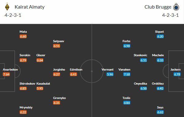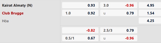 Thông tin tỷ lệ kèo Kairat Almaty vs Club Brugge: