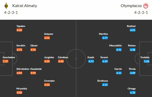 Đội hình dự kiến Kairat Almaty vs Olympiacos: