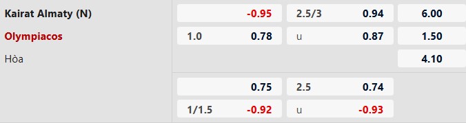 Nhận định kèo tài xỉu Kairat Almaty vs Olympiacos: