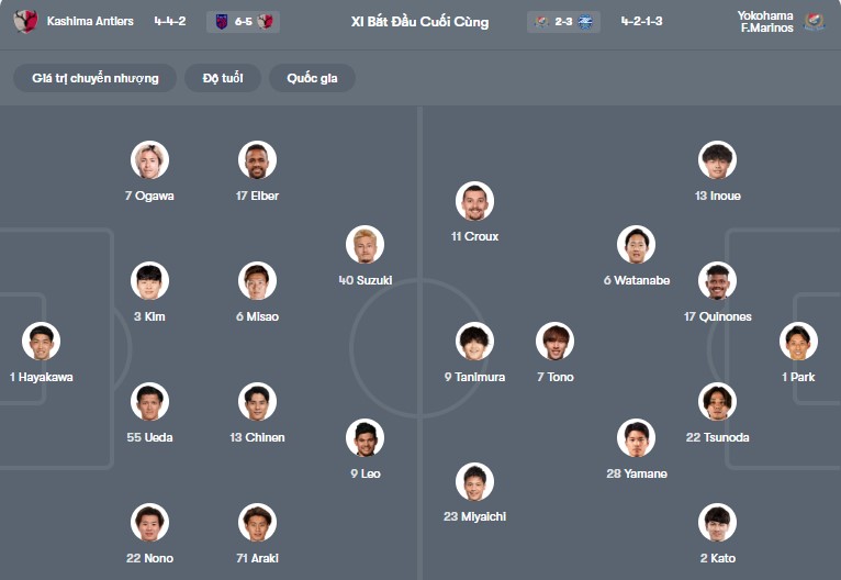 Đội hình dự kiến Kashima vs Yokohama Marinos: