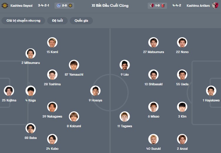 Đội hình dự kiến Kashiwa Reysol vs Kashima: