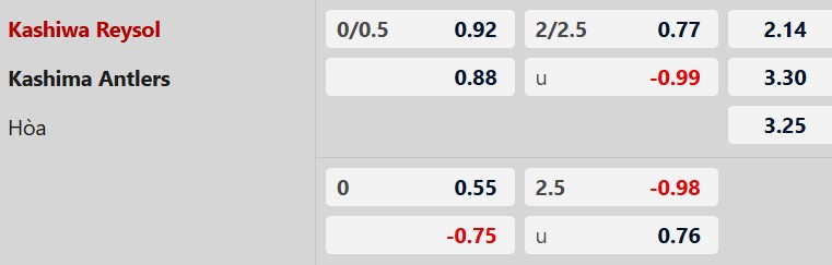 Thông tin tỷ lệ cược Kashiwa Reysol vs Kashima: