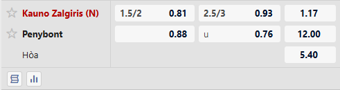 Với đẳng cấp và phong độ vượt trội, cùng lợi thế sân nhà và việc đang ở giữa mùa giải, Kauno Zalgiris được đánh giá rất cao với kèo chấp 1 3/4 bàn. Penybont đến từ một giải đấu yếu hơn và đang trong giai đoạn chuyển giao mùa giải, khó lòng tạo bất ngờ. Khả năng Kauno Zalgiris giành chiến thắng cách biệt lớn để tạo lợi thế áp đảo trước trận lượt về là rất cao.