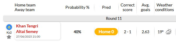 4 trong số 6 trận sân nhà gần đây thuộc khuôn khổ Kazakhstan First Division của Khan Tengri không xuất hiện nhiều hơn 2 bàn thắng. Kịch bản tương đối quen thuộc này hứa hẹn tái diễn khi Khan Tengri cùng Altay thi đấu vòng 11 mùa 2025.